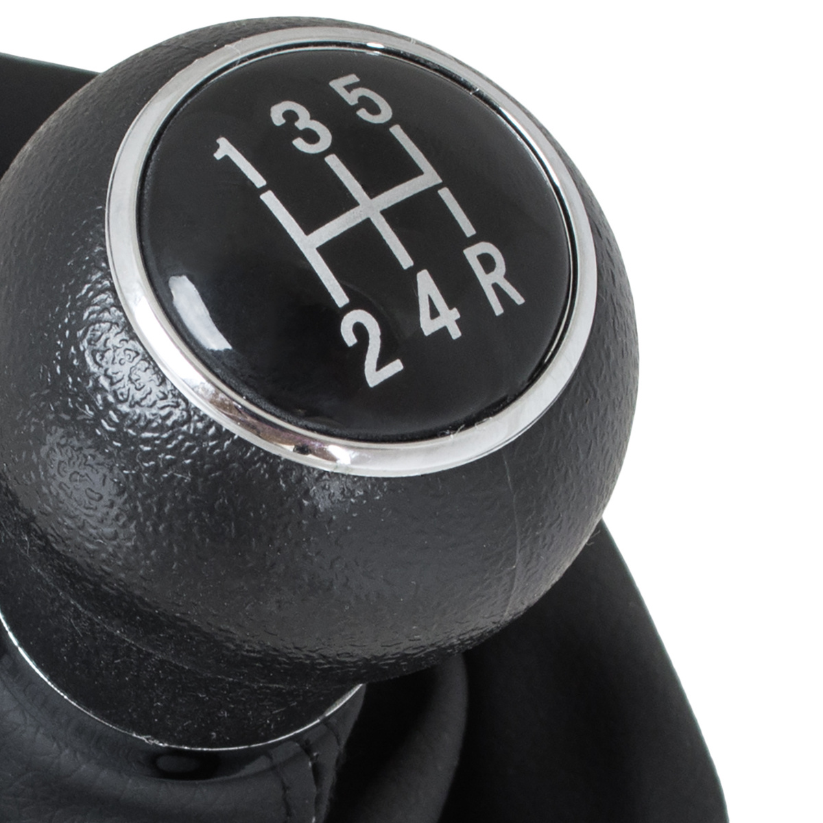 - Kolor: mieszek czarny, gałka czarna, nakładka czarna z chromowym pierścieniem i białym schematem 5 biegów + R