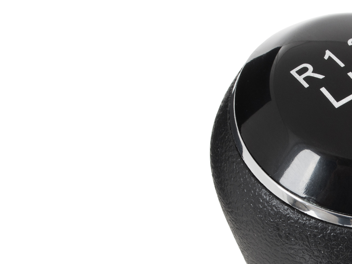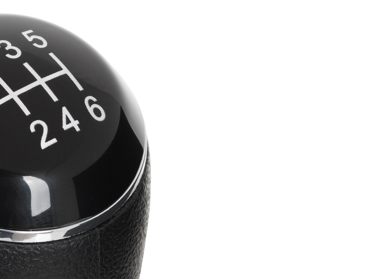 - Schemat: nakładka w kolorze czarnym z chromowym pierścieniem i białym schematem 6 biegów + R