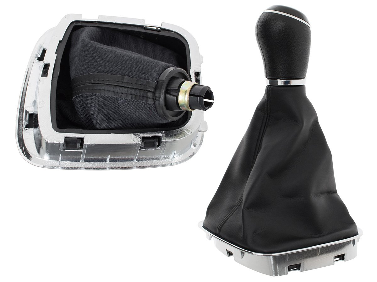 VW Polo V 6R 2009- gałka zmiany biegów CZARNA + mieszek z ramką CHROM 6 BIEGÓW