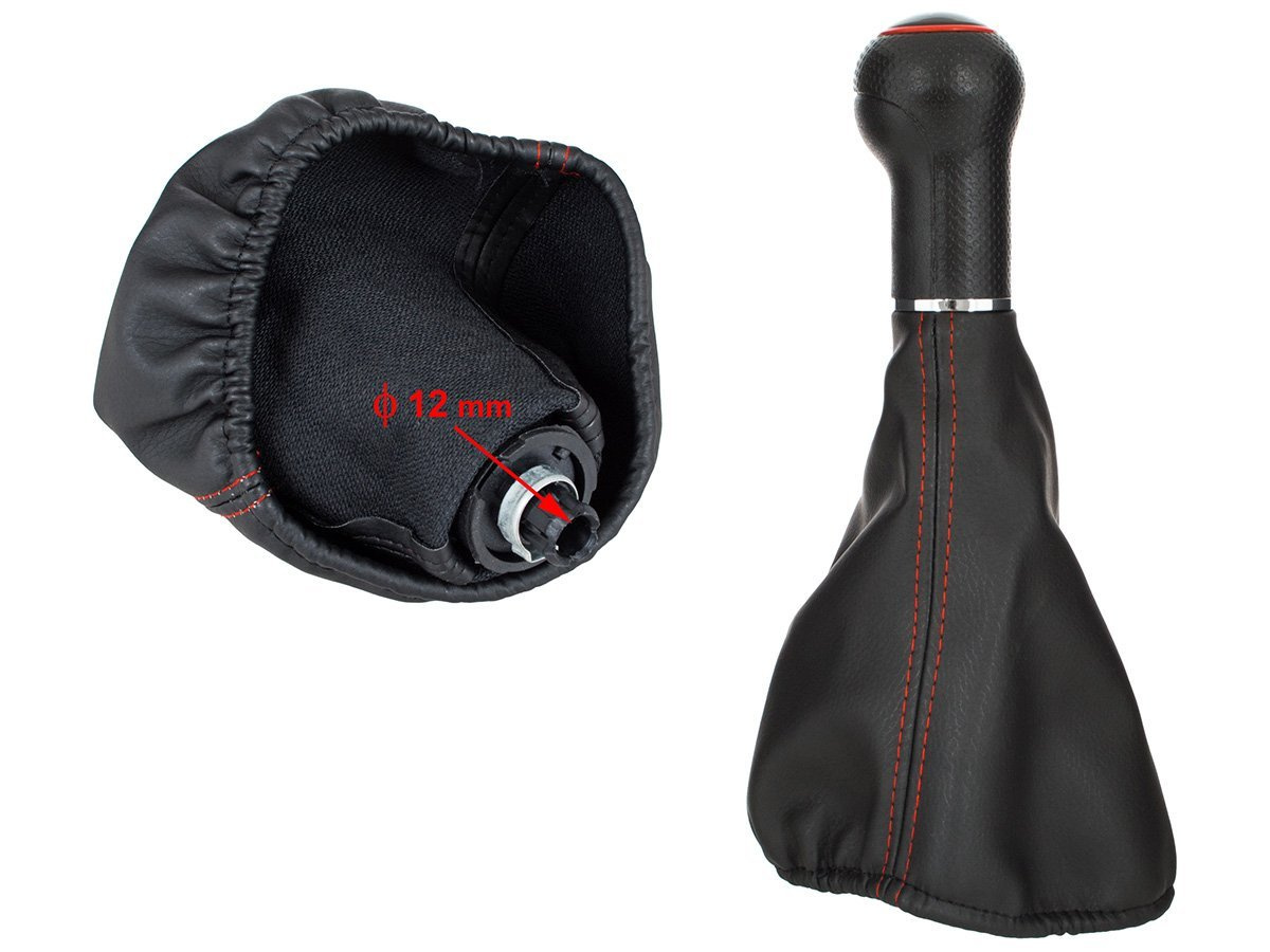 Seat Ibiza II 93-02 gałka zmiany biegów CZARNA + MIESZEK CZARNY z CZERWONĄ NITKĄ CZERWONY PIERŚCIEŃ 5 BIEGÓW