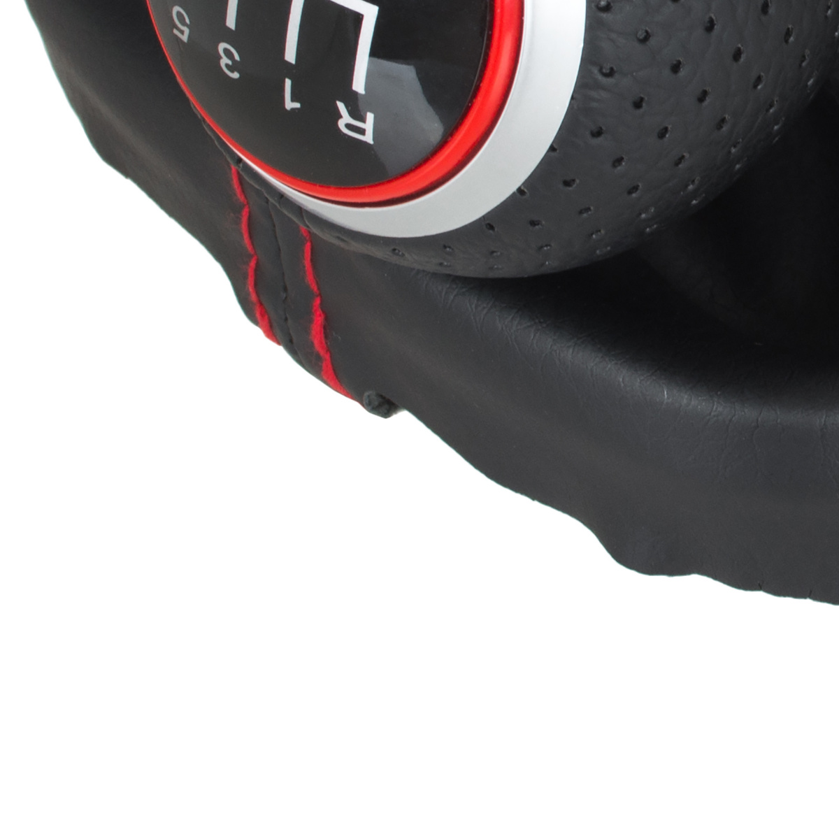 Audi A3 8P 03-12 gałka zmiany biegów CZARNA EKOSKÓRA + SILVER 6 BIEGÓW + mieszek CZARNY Z CZERWONĄ NITKĄ